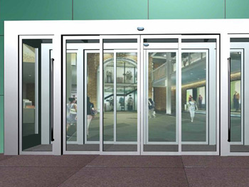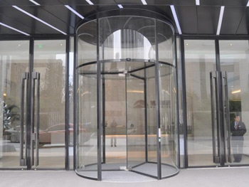 答:自動旋轉門由于其永遠開啟的同時又永遠關閉的特點,使其動態密封效果在經常使用的條件下相對于其他自動門要好。由于自動旋轉門的人流量有限,通常在自動旋轉門兩側另設自動或手動平開門,一方面增加通行能力,另一方面當自動旋轉門出現故障時,不影響人的通過。但在靜態密封效果方面,自動旋轉門遠不如其他自動門,因為其門體運動方式決定著只能使用毛條密封。 自動旋轉門的最大優點在于它“永遠開門,又永遠關門”,即對于人員來說,門總可以打開,可對于建筑物來說門又總是關著。因此,自動旋轉門在保安功能方面具有獨到的發展,但在人員流量方面自動旋轉門卻沒有優勢,因為門的轉速是固定的,每個門翼之間可容納的人員也是有限的。每種自動旋轉門都有標定的人員流量數值。